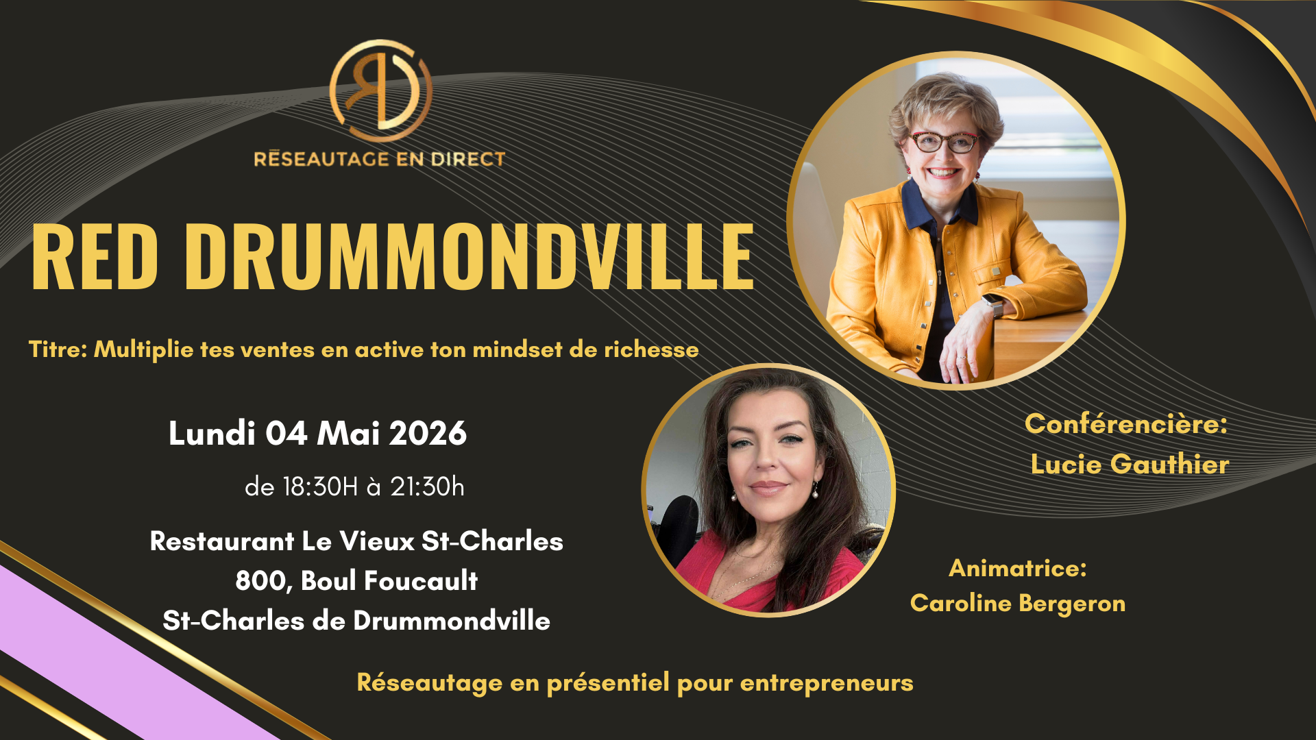 Sous l’animation de Caroline Bergeron découvrez les clés du mindset de richesse avec la conférencière Lucie Gauthier, reconnue pour son énergie, sa clarté et ses stratégies concrètes.