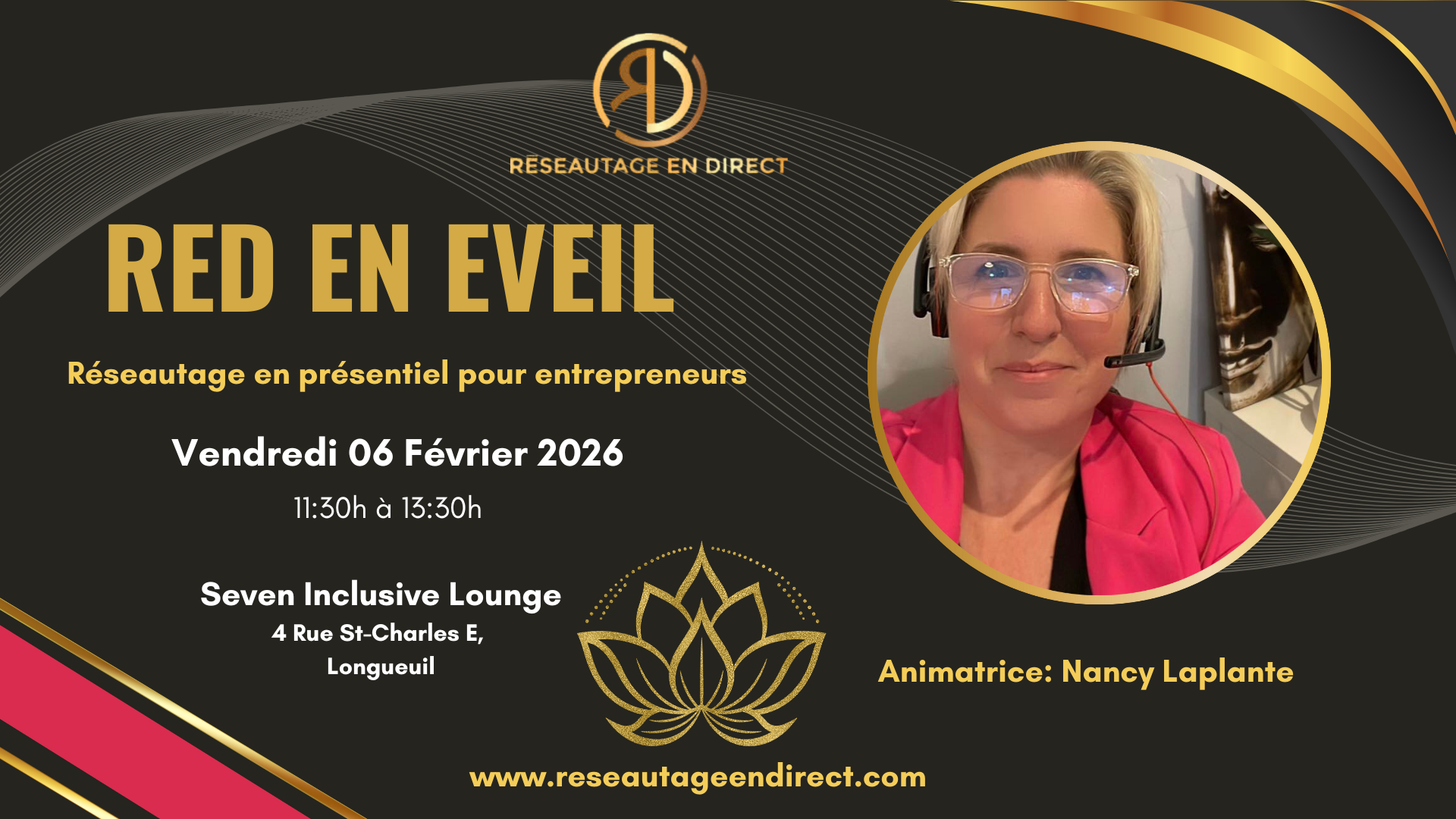 Le vendredi 06 Février 2026, de 11h30 à 13h30, viens vivre une expérience de réseautage en présentiel au Seven Inclusive Lounge à Longueuil.