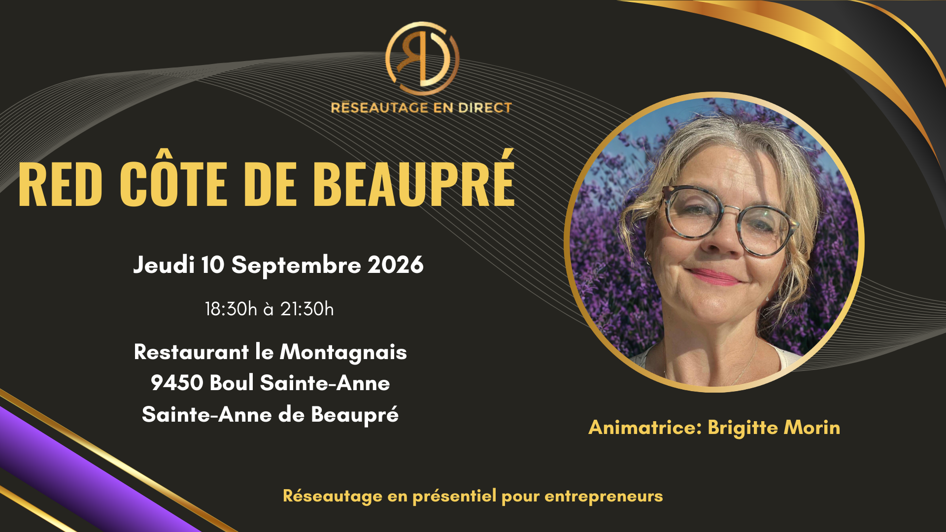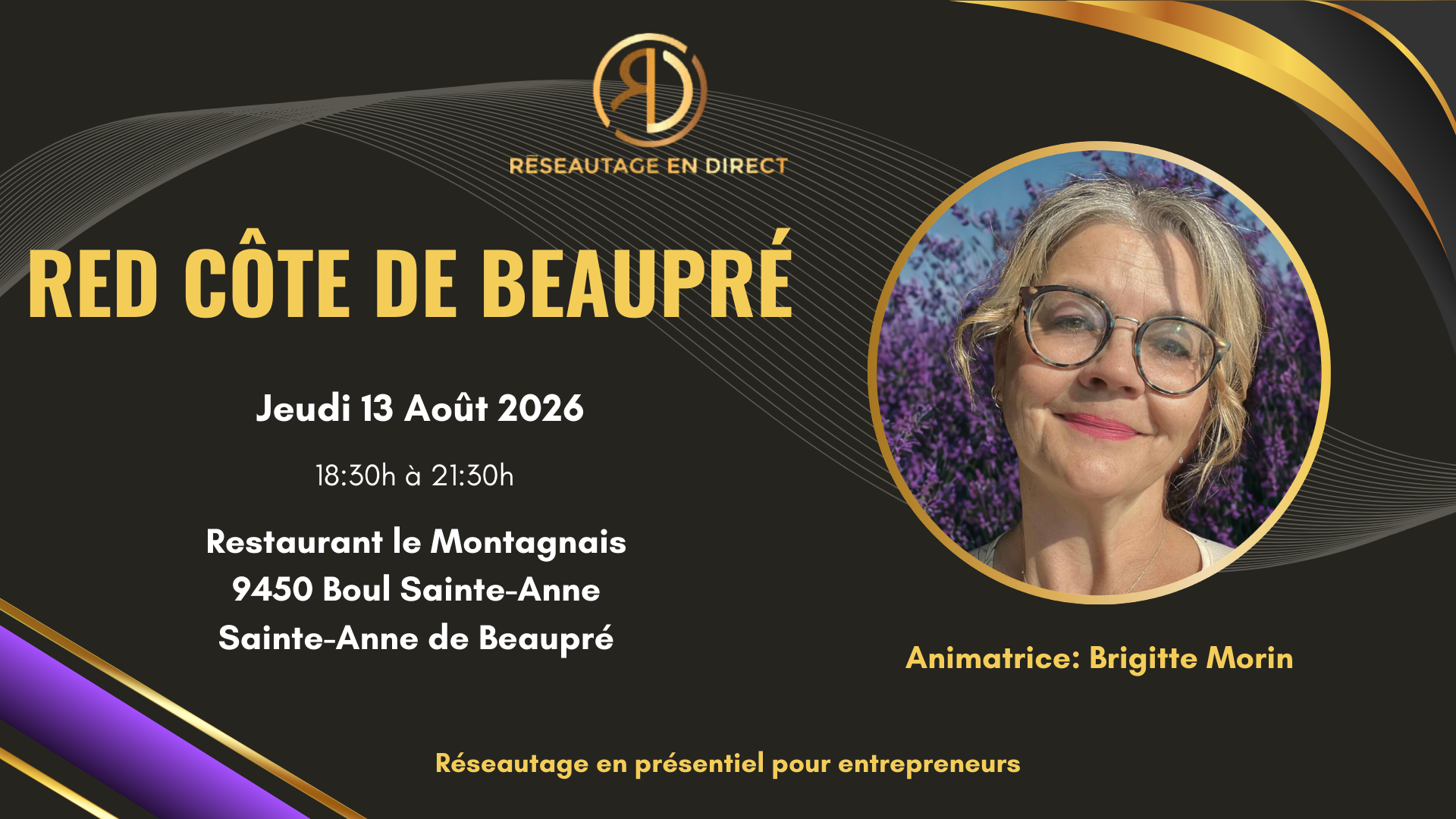 RED – Réseautage Entrepreneur Authentique Tous les mercredis 16h15 à 17h45 (heure du Québec) – 22h15 à 23h45 (heure de la France) « Rejoins le mercredi authentique chez RED » Tu es entrepreneur et tu aimerais créer des liens avec d’autres personnes qui, comme toi, avancent avec authenticité et conscience? Tu n’as pas toujours le temps de te déplacer dans toutes les régions pour réseauter, mais tu aimerais quand même : Élargir ton cercle Rencontrer des gens inspirants Échanger sur tes besoins, tes envies et tes préoccupations actuelles Présenter tes nouveautés Alors ce rendez-vous est pour toi! Retrouvez-nous tous les mercredis de 16h15 à 17h45 (heure du Québec) sur Zoom, pour une rencontre simple, conviviale et alignée. ANIMATRICES : Lucie Dubé & Nancy Laplante Ensemble, nous proposons cet espace suite à une demande grandissante : celle de rassembler les entrepreneurs authentiques de partout au Québec et au Canada dans un lieu commun, accessible et inspirant. C’est une belle nouveauté, et nous serons ravies que tu en fasses partie LIEN ZOOM 23