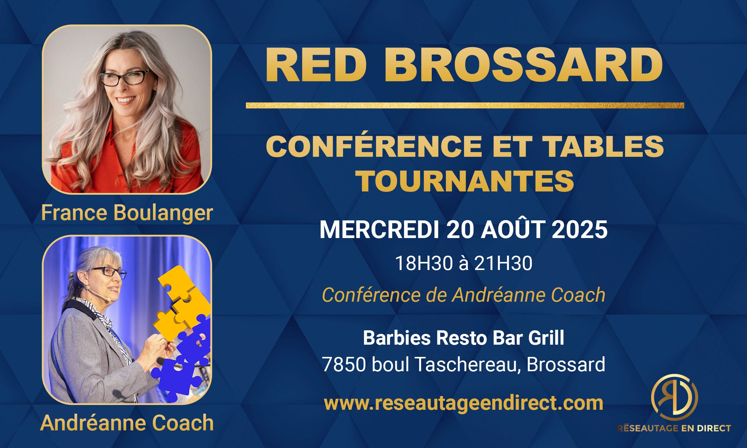 BIENVENUE AU RED QUÉBEC Jeudi 23 avril 2026 Lieu : Ginger Resto-Bar - 3031, boul Laurier, Québec  G1V 2M2 Heure : À partir de 18h30 Animé par Annie Lavallière Bienvenue à tous les entrepreneurs! Réservez votre place ici