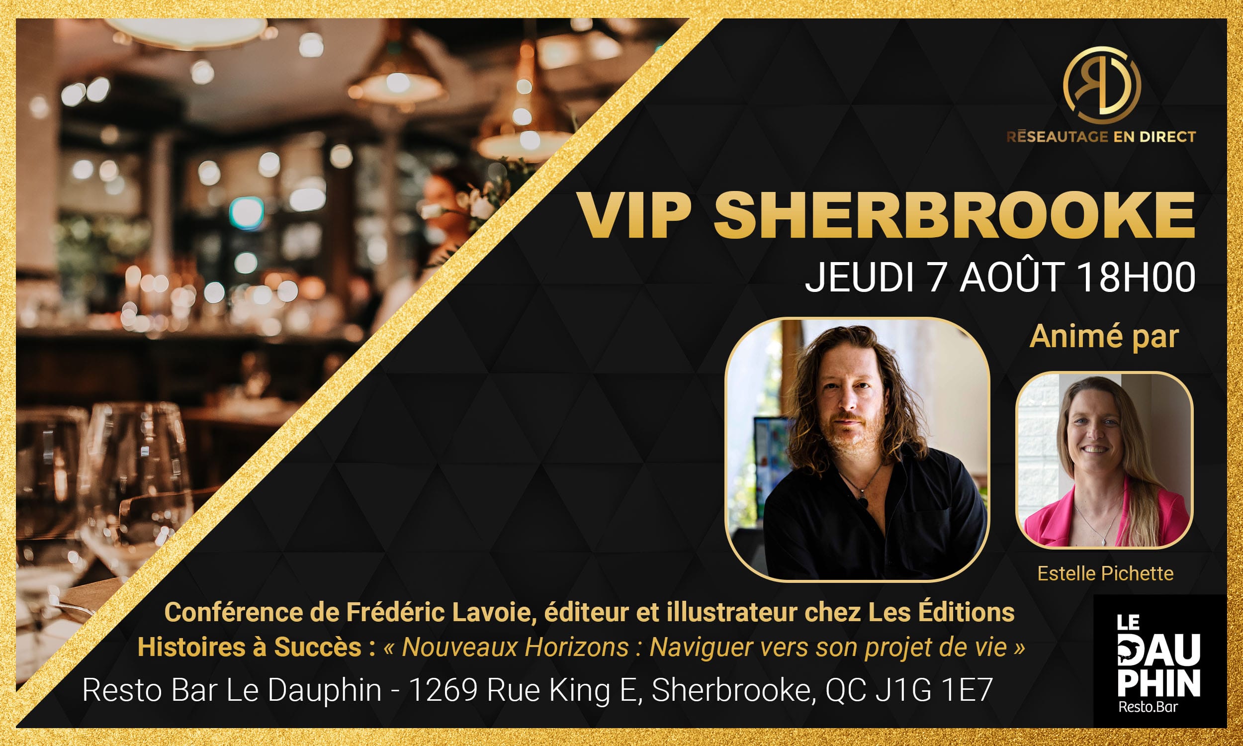 🎉 VIP à Shawinigan 🎉 📍 Le Saint-Mo Bistro Gourmand📅 Jeudi 18 décembre | 🕓 18:00h Joins-toi à nous pour une soirée inoubliable! 💼 De 18h à 21h : Réseautage VIP avec des entrepreneurs dynamiques de la région et tables tournantes animées par nos commanditaires Nos commanditaires : Jean-François Lusignan et Joanie Dufresne - Calfeutrage Double J Geneviève Marcouiller - IA Groupe Financier Laurie Pépin - RE/MAX 1er CHOIX Le Saint-Mo Bistro Gourmand Ariane PM - Équilibre chez soi Carmelle Nolin - Relation d'aide Sébastien Pothier - Konnecta Inc. ✨ Un rendez-vous à ne pas manquer ! Animé par la dynamique Mélanie Pelletier 📣 Places limitées – réserve vite ta place! *Souper au frais des participants Réservez votre place ici