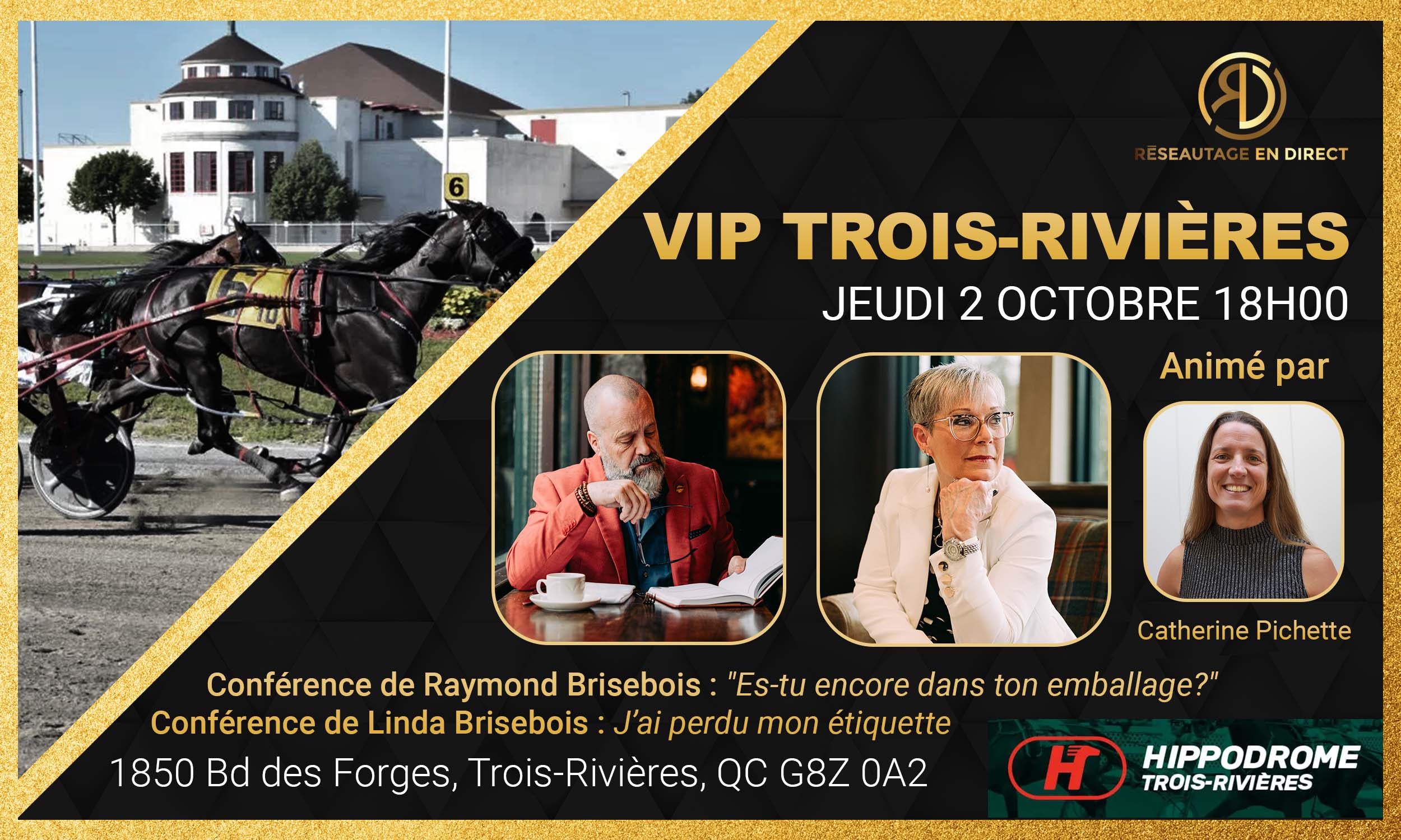 BIENVENUE À NOTRE RÉSEAUTAGE À TROIS-RIVIÈRES Une conférence et de riches rencontres en perspective ! Pour les entrepreneurs de 18 ans et + - Maximum de 35 personnes **Menu à 19.95 et plus + taxes et pourboires Animé par Melanie Pelletier et Lyne Montembault Réservez votre place ici