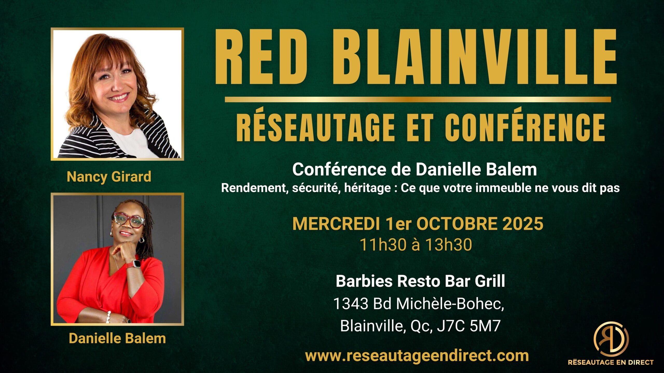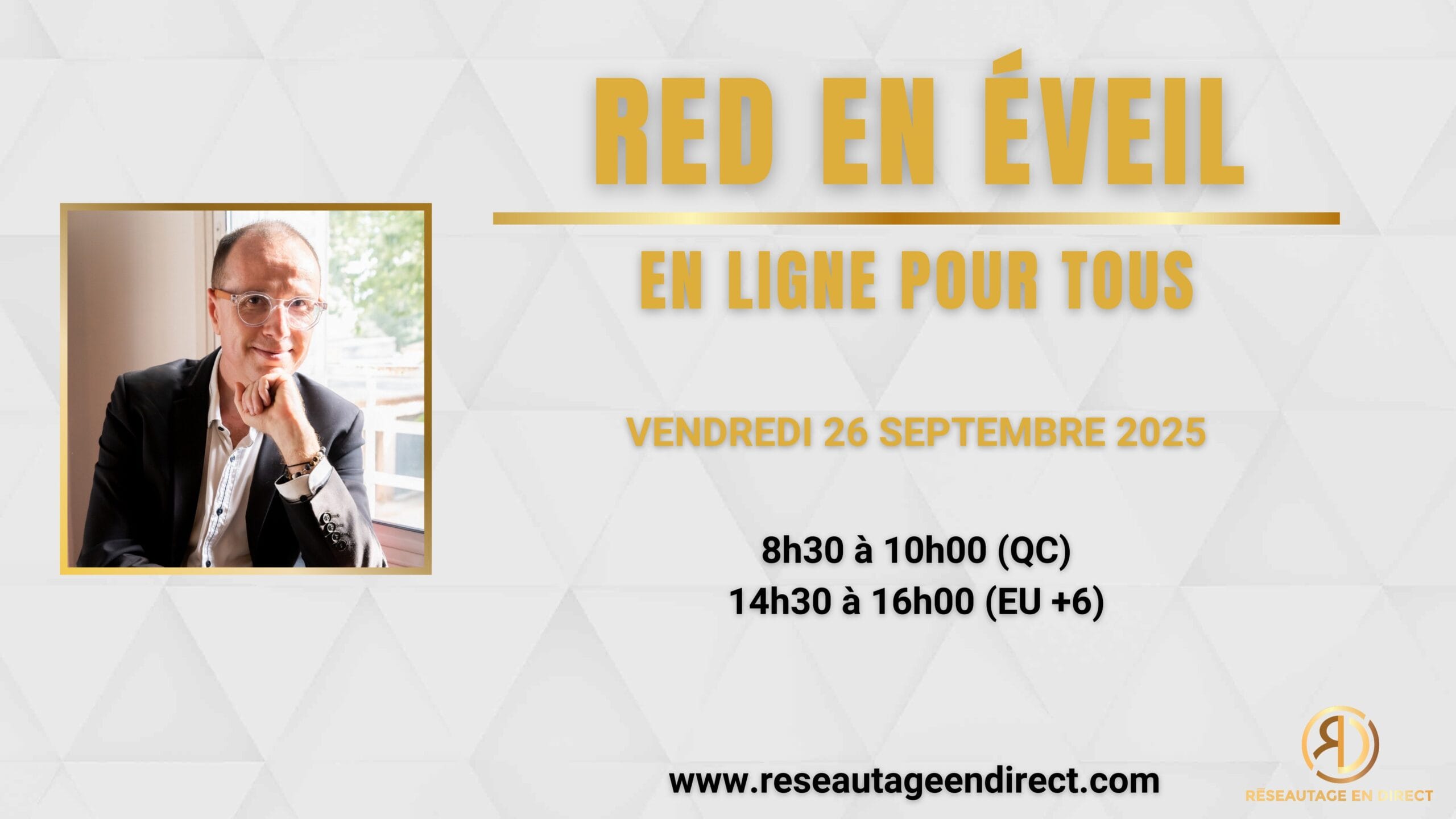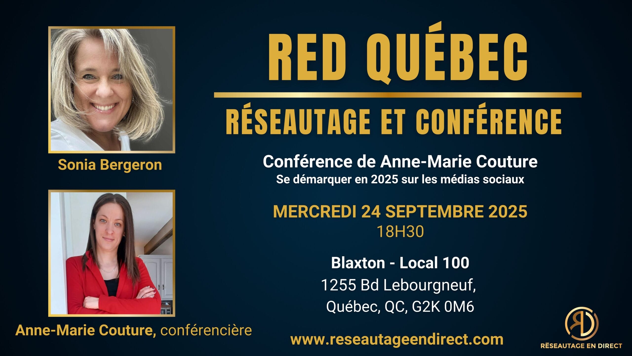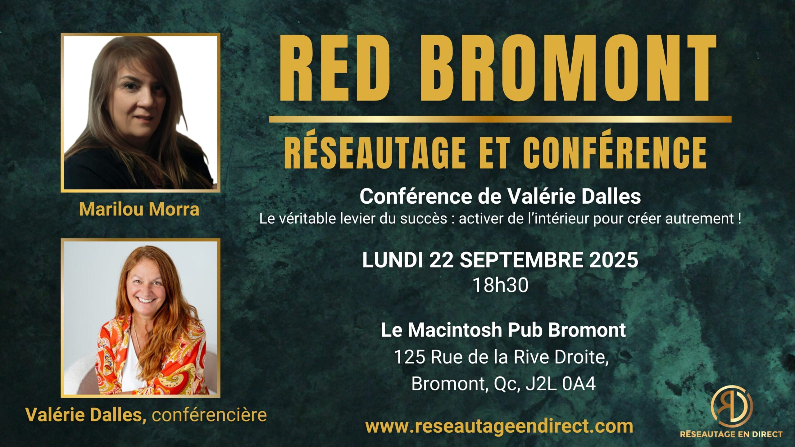 Le Saint-Mo Bistro Gourmand 902 Prom Du St Maurice,Shawinigan,Québec,CanadaBienvenue à notre RED SHAWINIGAN Soyez des nôtres en grand nombre pour connecter avec des entrepreneurs de votre région! Ce sera l’occasion de présenter vos entreprises et services en plus d’assister à une conférence captivante et repartir avec des outils pratiques à appliquer dans vos entreprises. 📅 Quand : 7 août 2025 📍 Où : Le Saint-Mo Bistro Gourmand, Shawinigan Conférence de Véronique Julien : J'existe ! Un témoignage inspirant d’un parcours vers la liberté et la joie de vivre. Après avoir surmonté de grands défis et vaincu ses peurs, l’oratrice a choisi de changer, d’exister pleinement et de servir l’humanité. Par son histoire de résilience, d’amour et de pardon, elle invite chacun à prendre soin de soi et à oser demander de l’aide, car le courage et le soutien sont essentiels pour mieux vivre. Ne manquez pas cette occasion unique d'être inspiré par des experts et de découvrir comment vous pouvez transformer votre vie et vos investissements. ✨ Inscrivez-vous maintenant et faites partie du changement ! ✨ ANIMATEUR: Alex Legault Réservez votre place ici